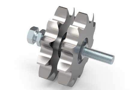A roda dentada, acondicionada no conjunto tipo KS-Duplex, é fornecida com o material de montagem apropriado para o dispositivo tensionador RESATEC correspondente. Para o tensionamento de correntes adicionais, fornecemos o conjunto de rodas dentadas tipo KS-Duplex com duas rodas dentadas e o conjunto de rodas dentadas tipo KS-Triplex com três rodas dentadas, incluindo as buchas espaçadoras correspondentes para o correto alinhamento da corrente.